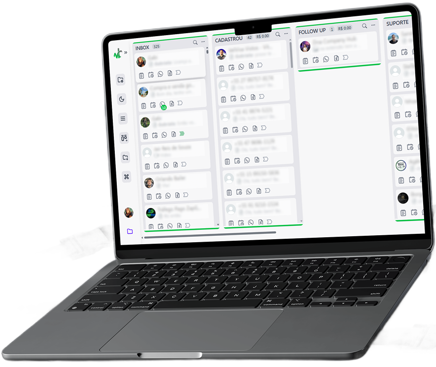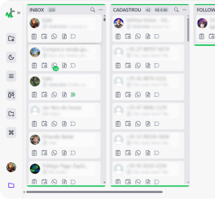 Visualize tarefas, organize conversas e mantenha o controle do seu funil comercial.